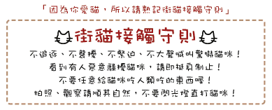 另外記得,街貓接觸守則務必要遵守,這個守則不論您是遇見-----
